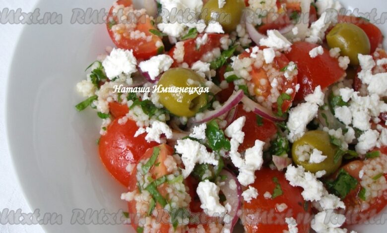 Рецепт салата с фетой, помидорами и оливками