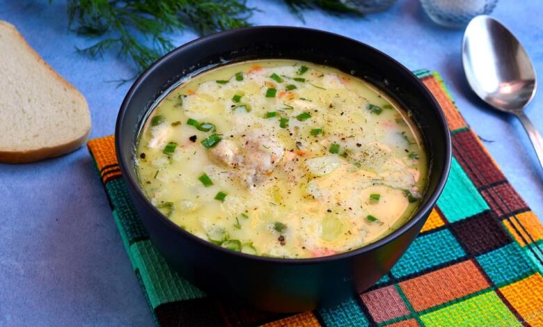 Сырный суп с курицей и овощами